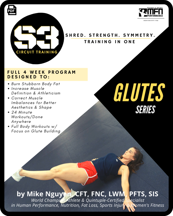 The S3 Glute Program is designed to help you get in peak shape, burn stubborn body fat and sculpt your muscles with a focus on the glutes/butt muscles. Perfect for summer season, wedding prep, photoshoots, and weight loss transformation. Follow this plan as a standalone if you want to achieve a lean, fit and athletic physique. If you want to focus more on building maximum muscle size and strength, follow our other strength training guides or combine it with the S3 circuits. - Coach Mike